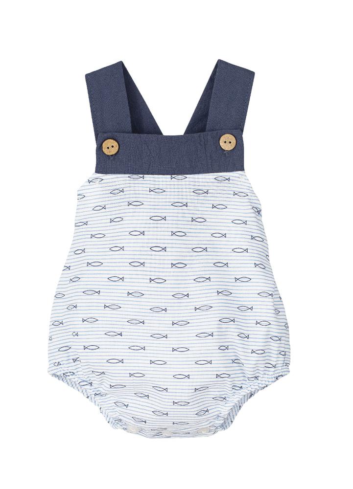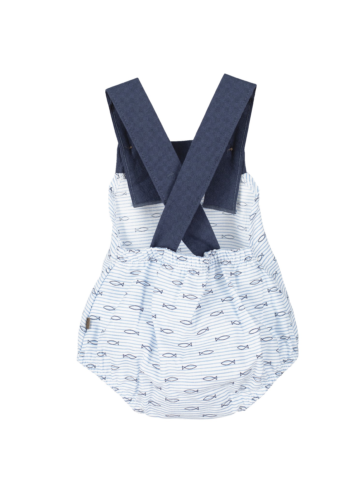 El cuerpo del peto es del tejido estampado de peces.